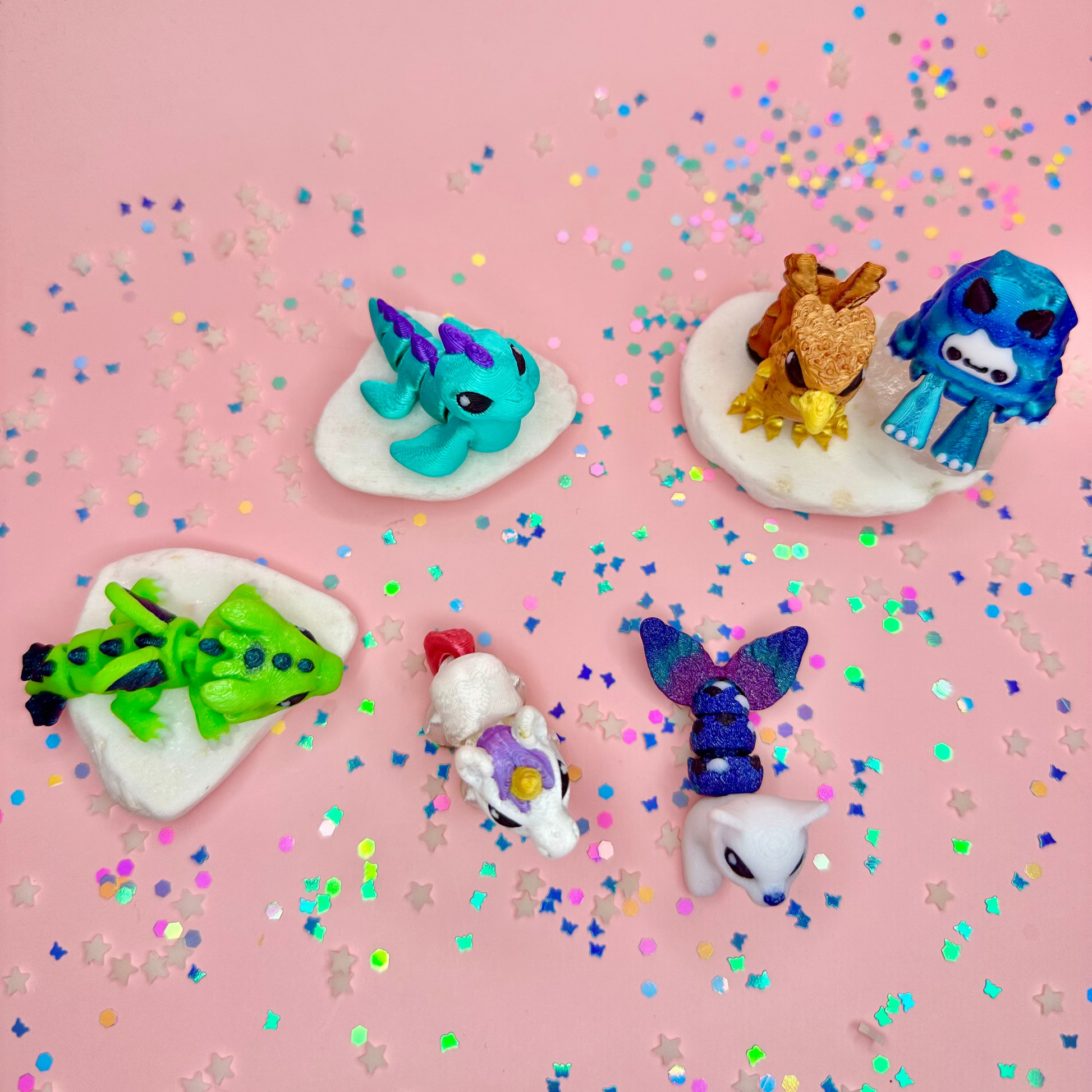 WILDLINGS Tiny but mighty! Our Wildlings are mini-sized flexi animals, creatures, and characters that wiggle, jiggle, and bring instant joy. Each bundle is themed and packed with wildly fun surprises—perfect for collectors or little gifts of whimsy.